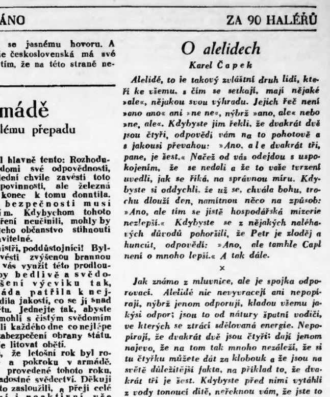 אם תאמרו להם ששתיים כפול שתיים הם ארבע, ישיבו לכם מיד במעין תחושת עליונות: "כן, אבל שתיים כפול שלוש, אדוני, הם שש". ואז יסתלקו מעליכם שבעי רצון על שלא נכנעו והעמידו את דבריכם, כמו שאומרים, על דיוקם. אם תיאנחו שהימים, תודה לאל, כבר מתארכים מעט, יטענו משהו בנוסח: "כן, אבל זה לא מה שיעלים את מצב־הביש הכלכלי". אם בעטיה של סיבה דחופה כלשהי תזעיפו פנים כי פֶּטר הוא גנב ופושטק, ישיבו: "כן, אבל אצל צאפְּל הזה שמה המצב גם־כן לא יותר טוב."